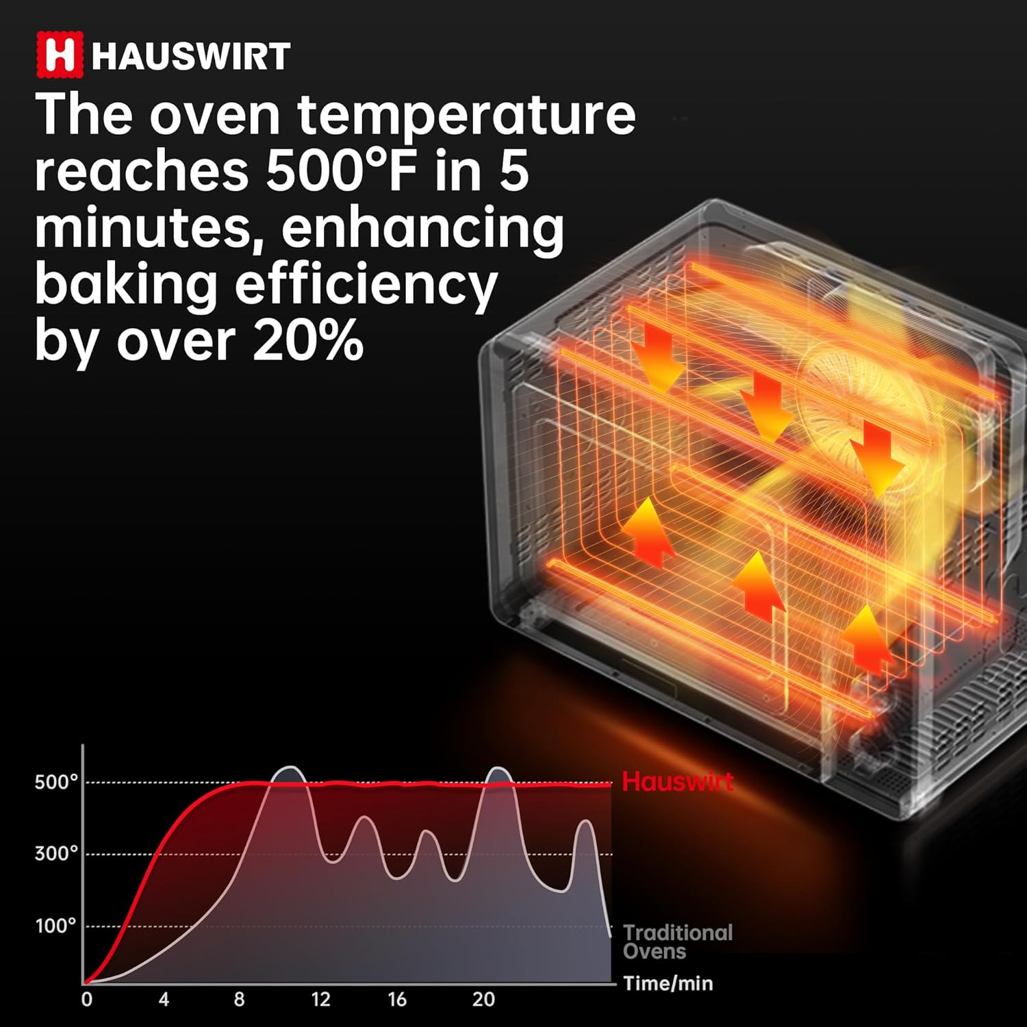 Hauswirt® C45, 36Qt Air Fryer Conventional Oven C45,10-in-1 Combo,40L Extra Capacity Air Fryer,Baking and Frying Integrated,1800 Watts,80°F - 500°F,Non-Stick, Stainless Steel,Online Recipe Booklet